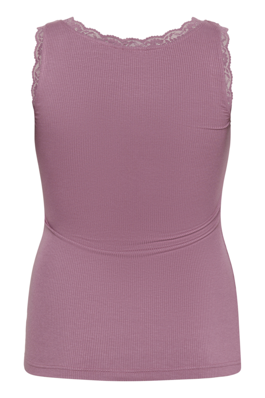 Mooi basis hemdje met een ribje en een subtiel kantje randje. Mooi onder een blazer of onder een blousje.