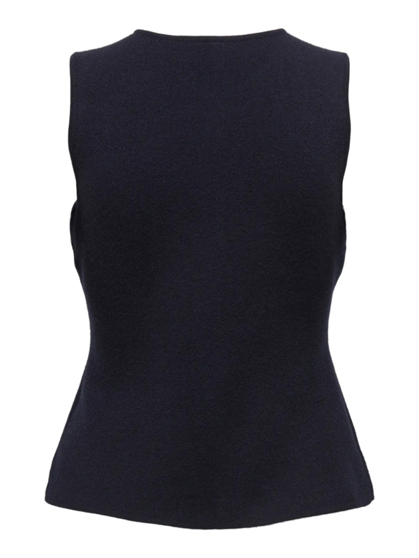 Mooi donkerblauw gilet met knopen. Leuk te dragen over bijvoorbeeld een coltruitje of blousje.