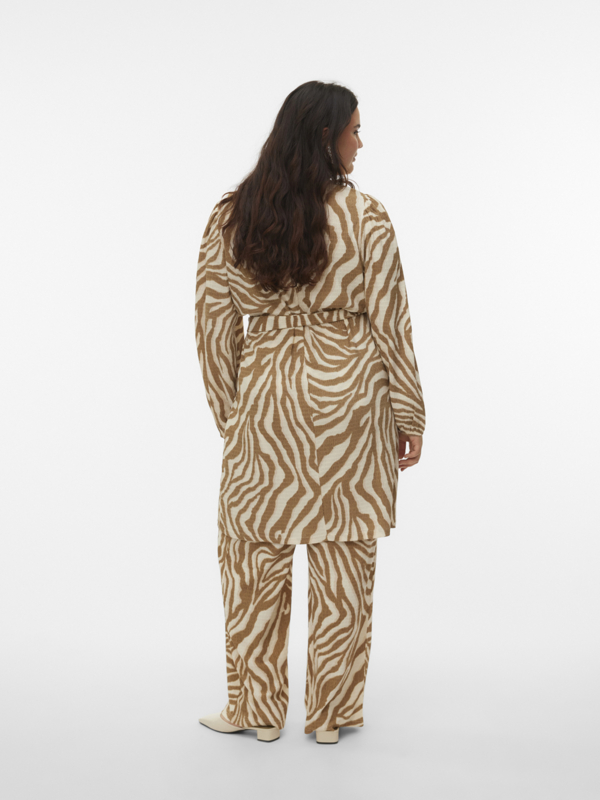Kort jurkje met een zebraprintje. Het jurkje heeft een lange mouw, een ronde hals en een striklintje in de taille. Ook leuk te combineren met de bijpassende broek voor een trendy lookje!