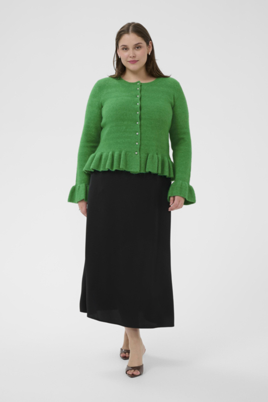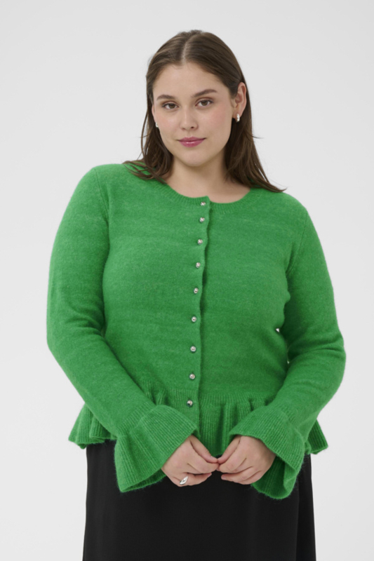 Leuk vestje met peplum aan de onderkant. Het vestje heeft een ronde hals en een lange mouw met een ruffle aan de onderkant.