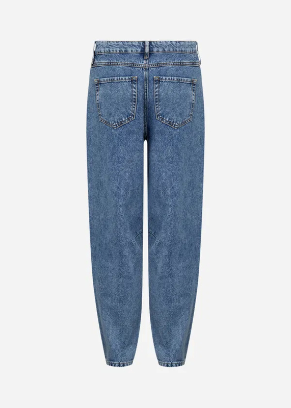 Toffe barreljeans van ons nieuwe label Wasabi. Dit model heeft een wat rondere pijp en loppt onder wat toe. De jeqans heeft een mooie blauwe wassing, zakken en riemlussen en valt ietsje cropped.