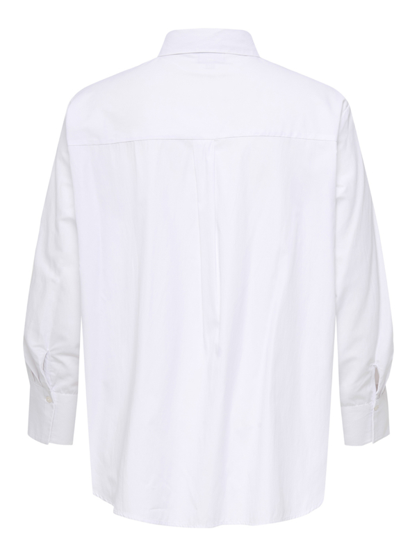 Mooi kraakhelder wit overhemd met een kraagje en knoopjes over de hele lengte. De blouse heeft een lange mouw met manchetten. Pasvorm: de blouse valt oversized dus neem gerust een maatje kleiner als je dat liever niet wil. Ook verkrijgbaar in roze en groen.