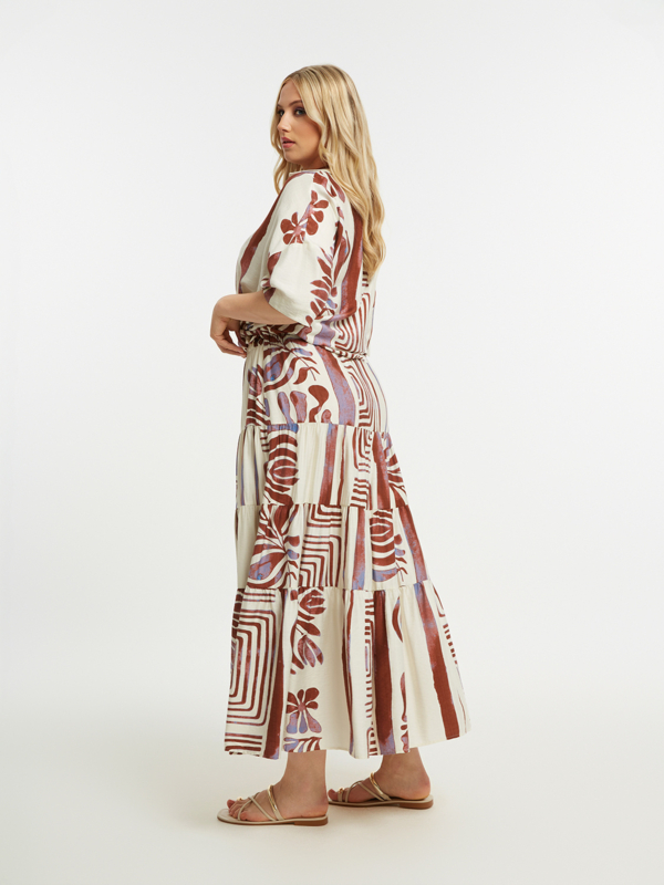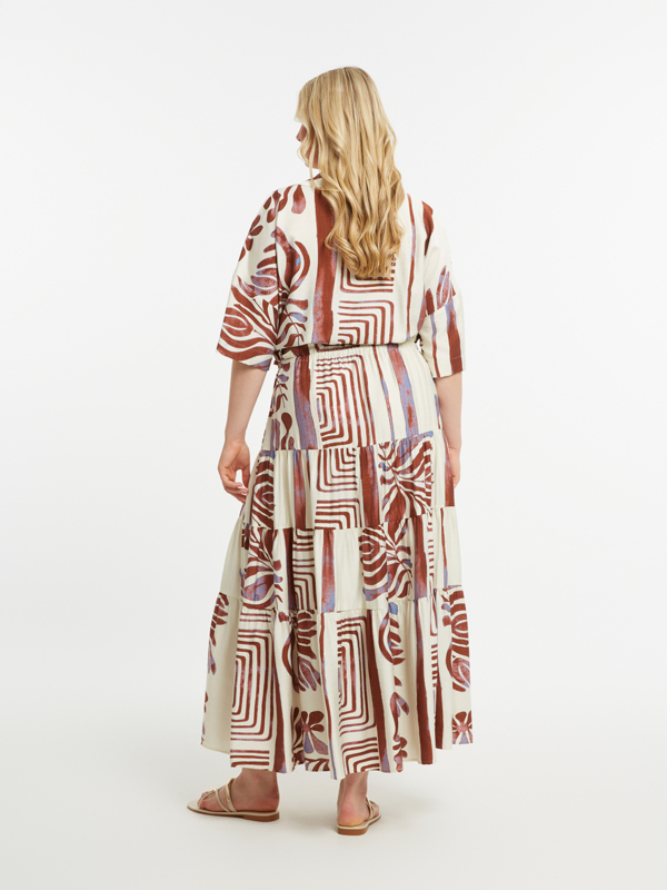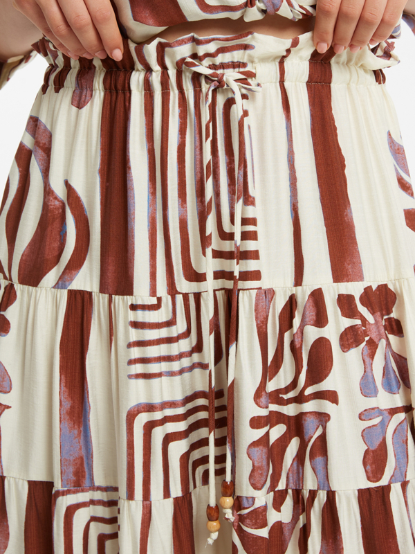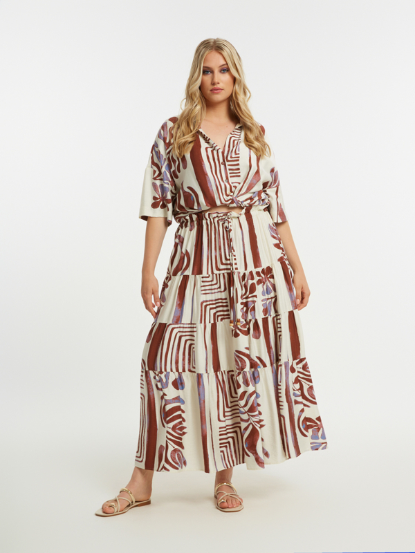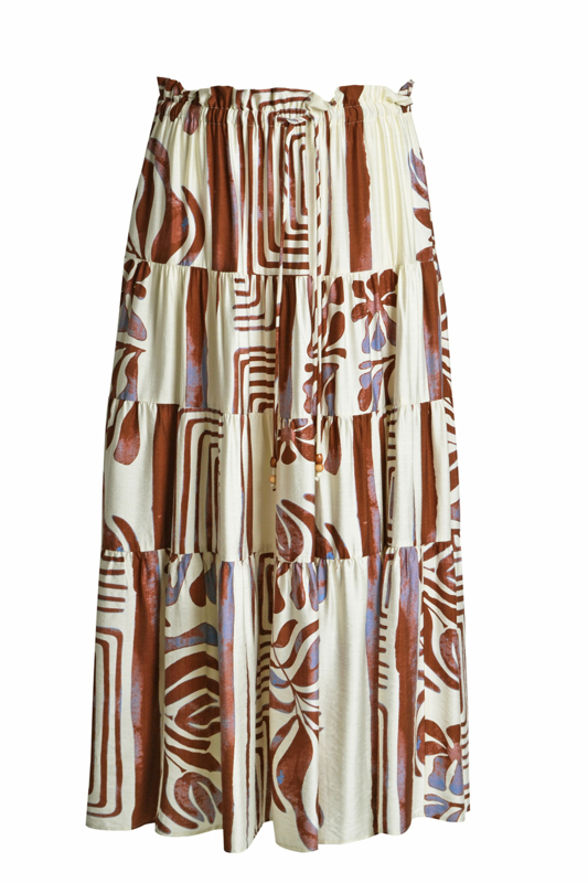 Prachtige strokenrok in een zomerse print. De rok heeft elastiek in de taille en een tunneltje met kralen. Verder loopt de rok lekker wijd uit. Heerlijk in de zomer met een hemdje en slippertjes.