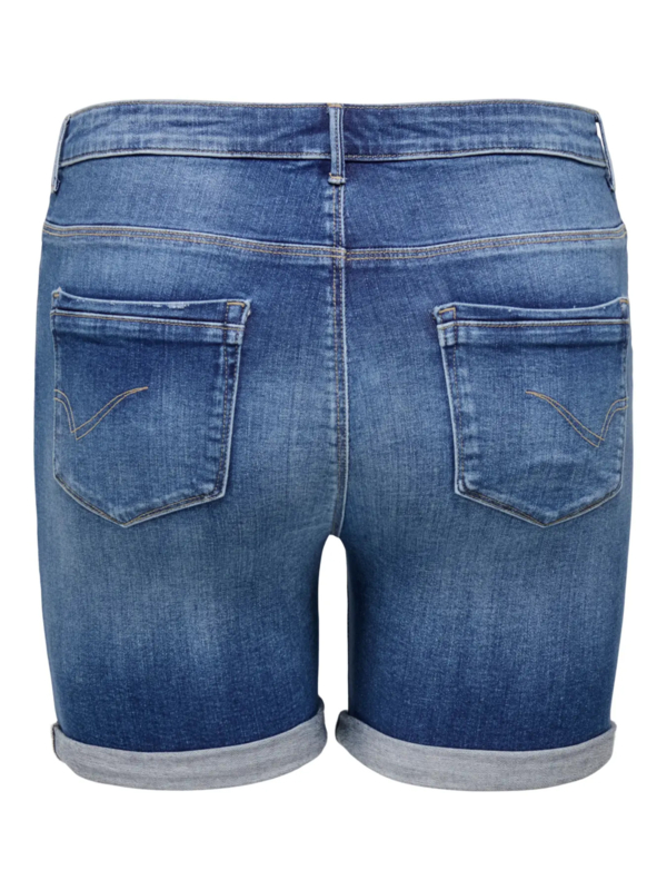 Mooi basic denim shortje in een medium blauwe kleur. Het shortje heeft een high waist.