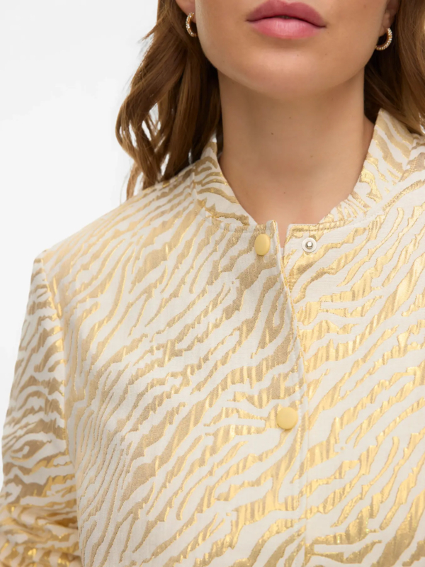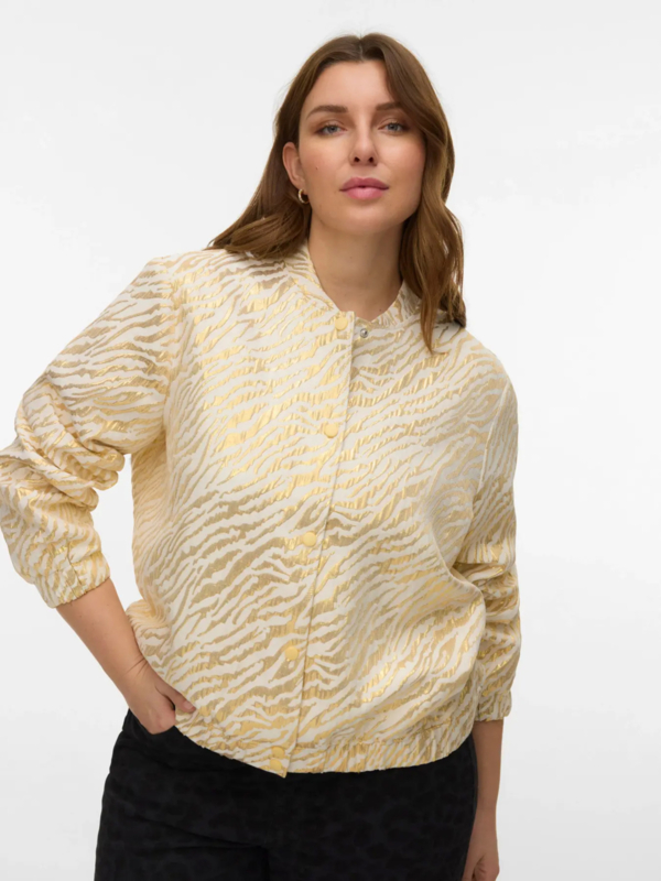 Super tof bomberjacket in een glanzend printje. De bomber heeft drukkers en een lange mouw met elastiek. Onderaan de bomber heeft het jasje een elastische boord voor het klassieke bomberjack effect.