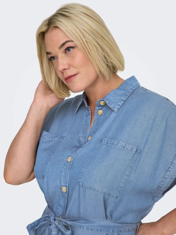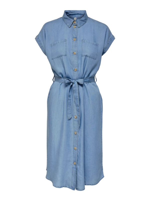 Heerlijk tencel jurkje met knoopjes over de hele lengte. Het jurkje heeft een aangeknipte mouw, een kraagje en een striklintje in de taille.