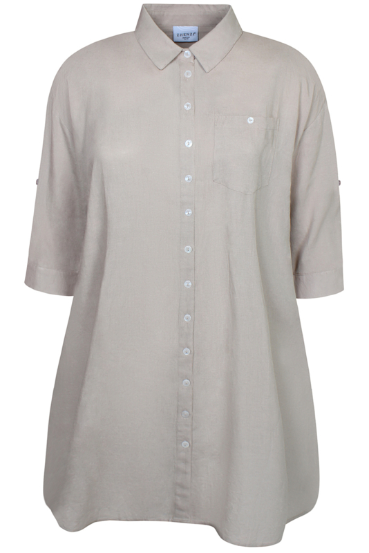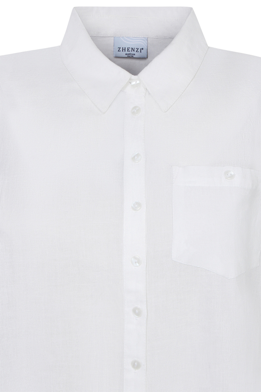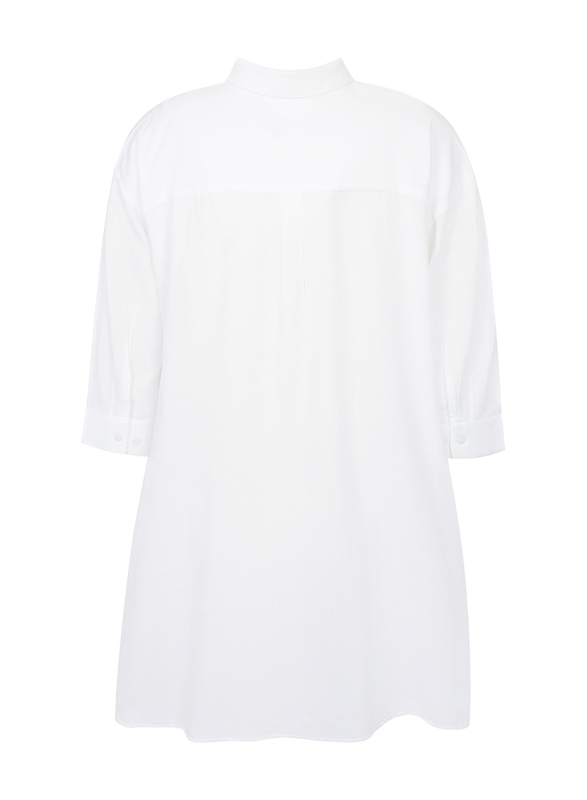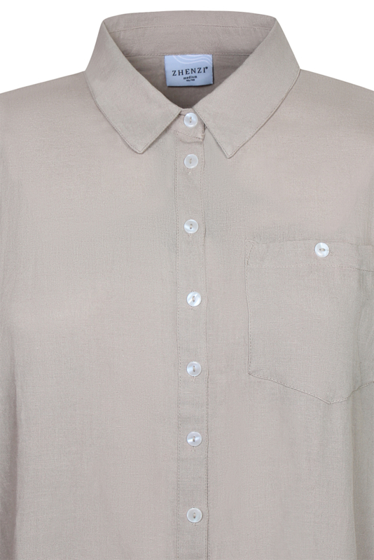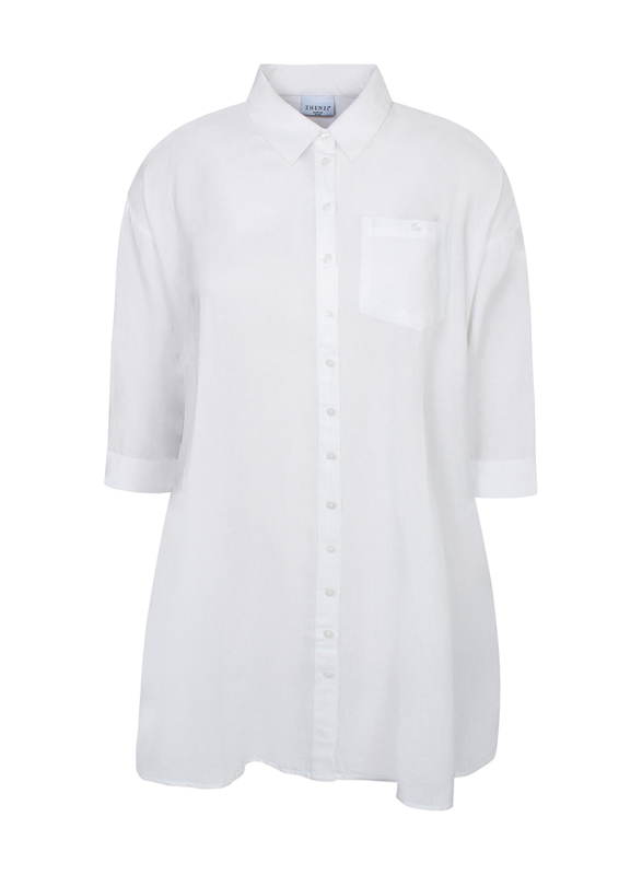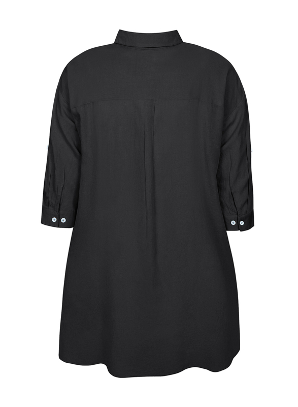 Mooie longblouse in een linnen/viscose/katoen kwaliteit. De blouse heeft knoopjes voor, een kraagje en 3/4e mouwen. Draag het als blouse, open als 'vest' of als jurkje.