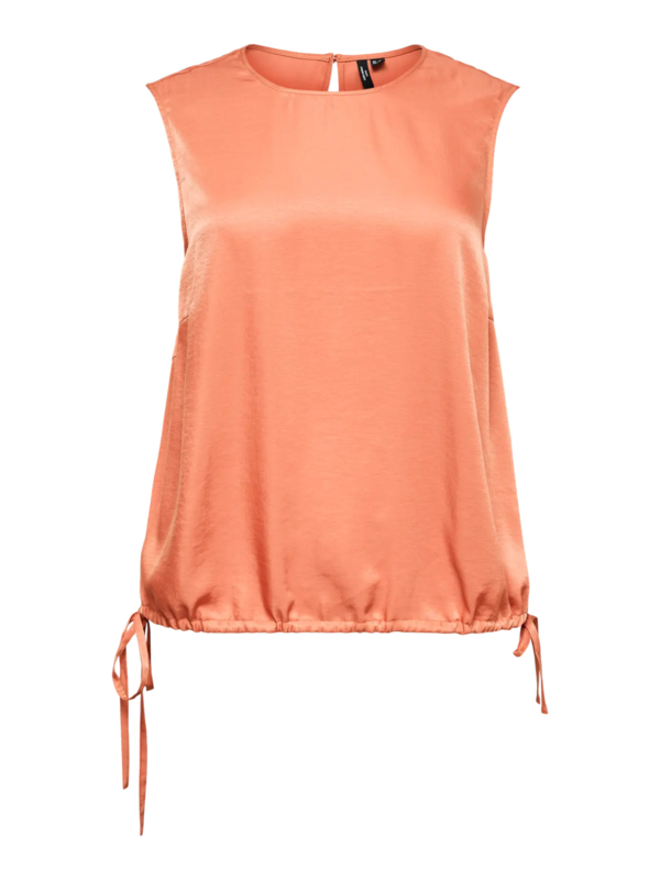 Mooie top in een glanzende stof. De top is mouwloos en heeft een ronde hals met achter in de nek een knoopje. Onderaan heeft de top een tunneltje met strikjes aan de zijkant waardoor je de top kan laten blousen. Super gaaf in combinatie met de bijpassende rok.