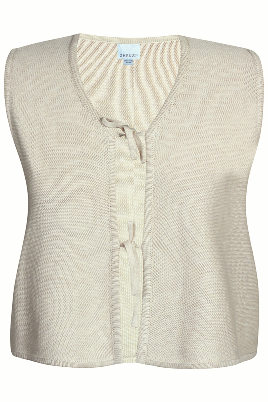 Super leuk gebreid giletje in beige. Het giletje sluit met 2 strikjes aan de voorkant. Leuk met een hemdje te dragen.
