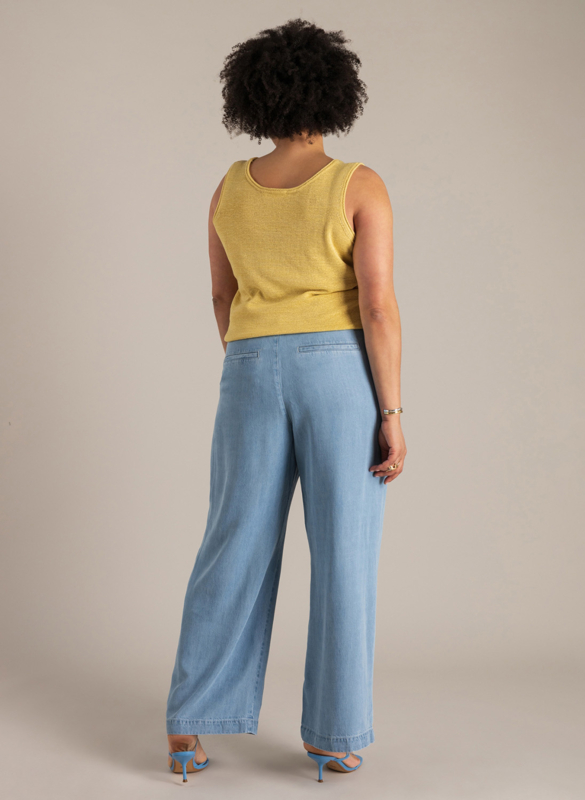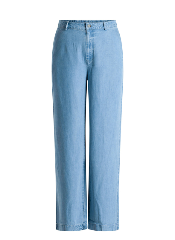 Toffe wijde tencel broek van Yest Curve. De jeans heeft een hoge taille, steekzakken en elastiek achter in de taille. Tof met de bijpassende blouse!