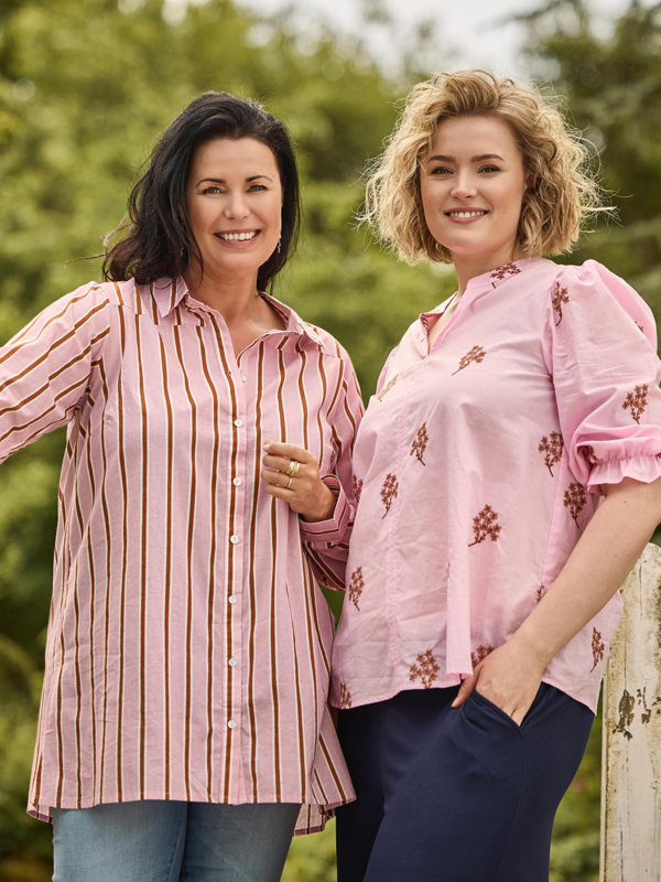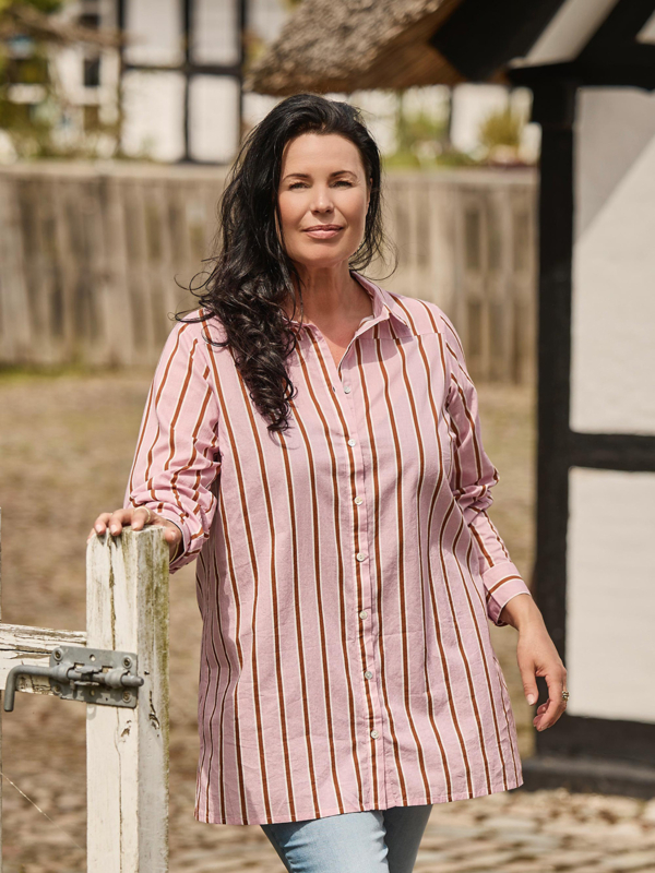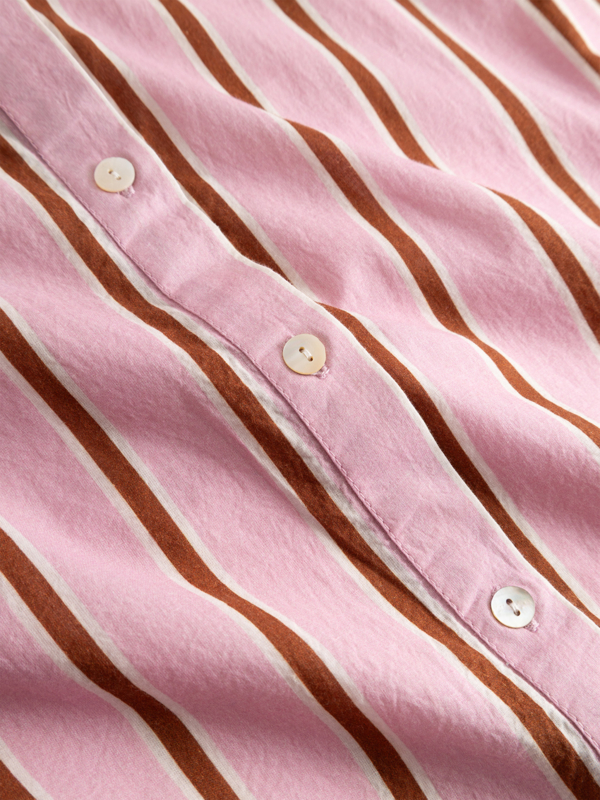 Trendy blouse van Zoey met een streepje in roze en rood. De blouse heeft een kraagj en lange mouwen. Leuk te dragen op een jeans of opengeknoopt met een hemdje eronder.