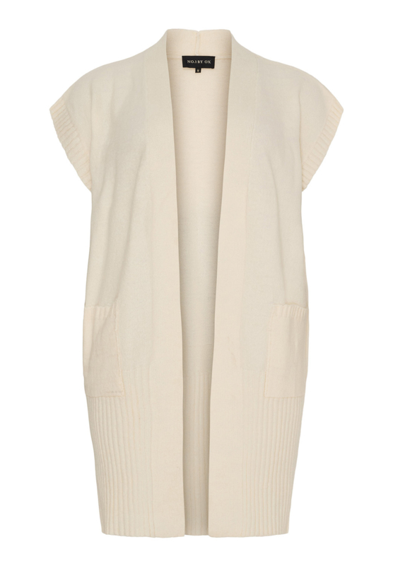 Gebreid mouwloos vest SpringGebreid mouwloos vest van No. 1 by Ox. Het vest zakken aan de voorzijde en valt over de knie.