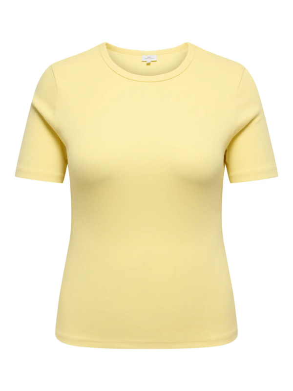 Rib t-shirt ValT-shirt in geel met een ribje in de stof. Het shirt heeft een ronde hals en een korte mouw. Het shirt heeft een passende fit.