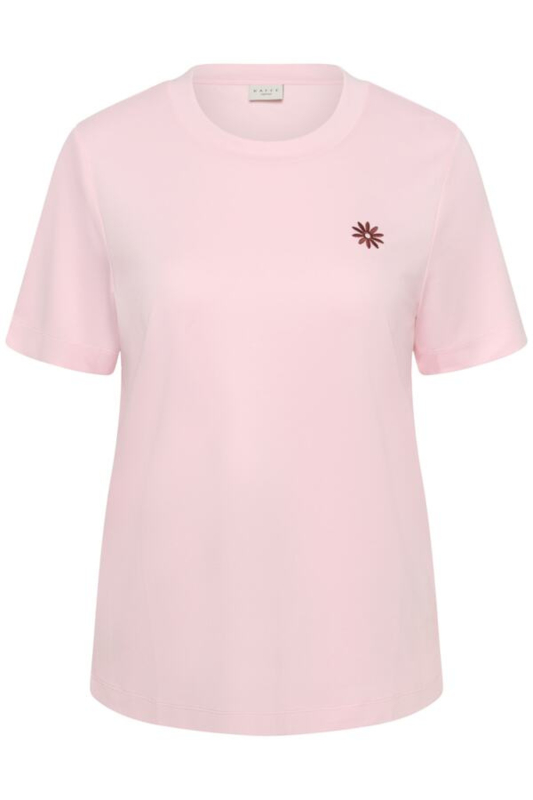 T-shirt Annia FlowerLeuk t-shirt met borduursel op de linkerborst. De roze variant heeft een cognackleurige gebordurrd zonnetje en de witte een donkerblauw geborduurde schelp.